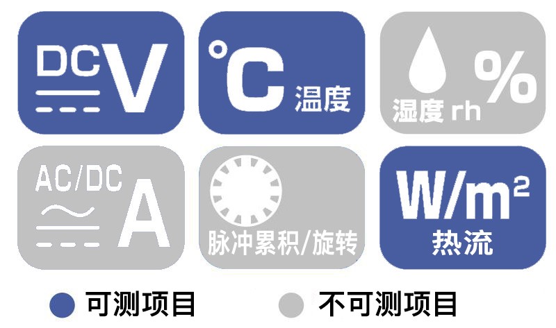 ● 1台仪器可以测量照度计和热流传感器的微小电流乃至电池电压和温度