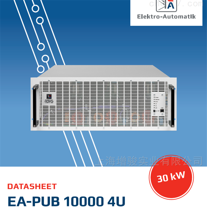 德国EA EA-10000系列直流电源型号介绍EA-PUB 10000 4U分为29 个型号,4U 系列功率可达 30 kW,单个机架功率最高可达 300 kW,宽范围交流输入电压:342-528V,可在380V,400V与480V电网下操作。双向-电源与负载融为一体高效的能量回馈。