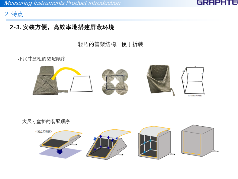 如今阻隔家用电器、个人电脑、手机、电动汽车等设备产生的电磁波成为一个重要问题。日本图技电磁屏蔽柜针对家用电器、个人电脑、手机、电动汽车等设备产生设备在运行中受外界电磁波的干扰,确保其正常工作,为了检查设备故障的原因并加以预防,人们越来越需要创造一种电磁屏蔽的环境。因此,GRAPHTEC提出了一种比无线电电波暗室和屏蔽室更容易建立屏蔽环境的方法。具有体积小、安装方便、使用灵活的特点,非常适合在那些不适宜安装电磁屏蔽室又需要对信息设备提供保护的场使用。合使用。