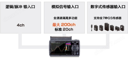 3种输入形态 可测量各种各样的现象输入1 : 最大扩展至200ch 模拟信号输入口(通道间绝缘多功能输入)